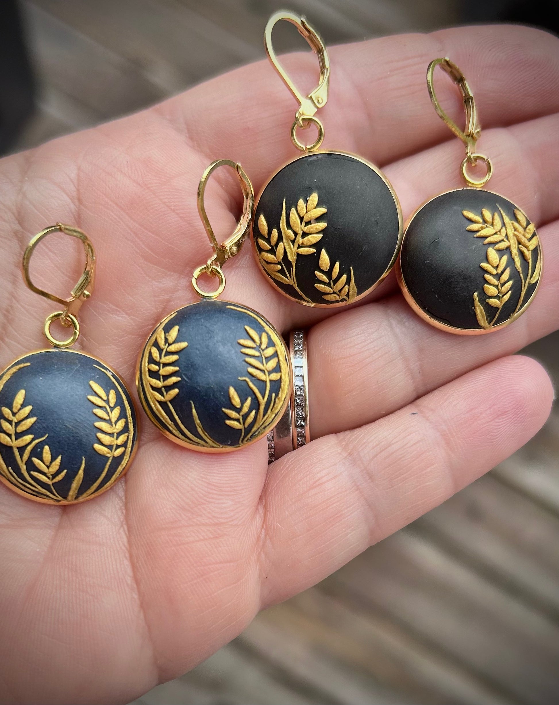 Som en hyllning till våra svenska bönder skapades dessa örhängen där vetet får ta plats på en blå eller svart bakgrund.
